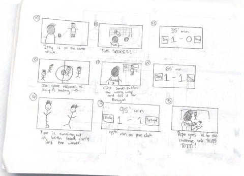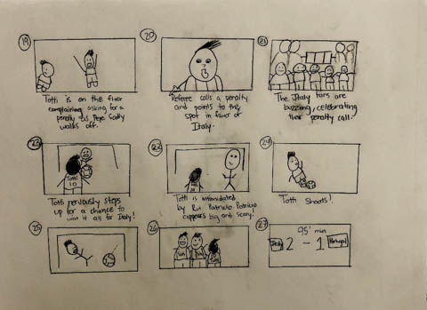 - Truck -> Camera follows the players as their national anthem is sung, as they anxiously wait for the biggest game of the season to start.