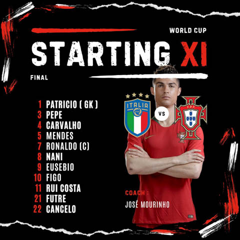 22 players 2 teams (Italy Vs. Portugal) (11 players each team) Massimo M = Italy, Massimo R = Portugal